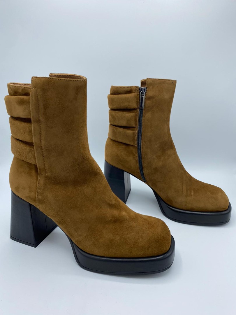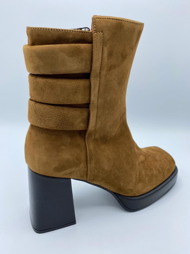 Boots buck marron avec talon haut de la marque Mot-clè.