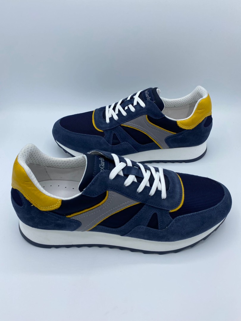 Baskets de la marque Nero Giardini en daim avec empiècements en cuir contrastant et tissu technique ton sur ton, doublure et semelle intérieure amovibles en cuir véritable et semelle en caoutchouc.
